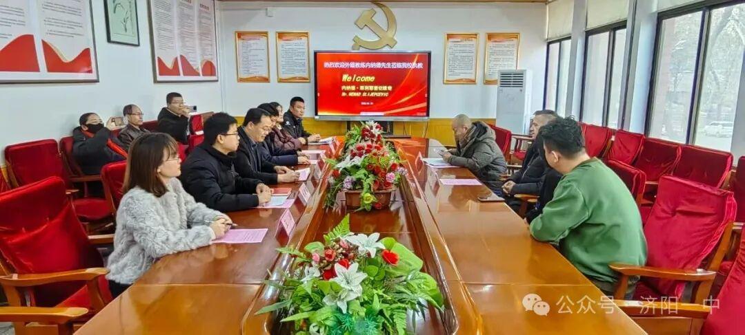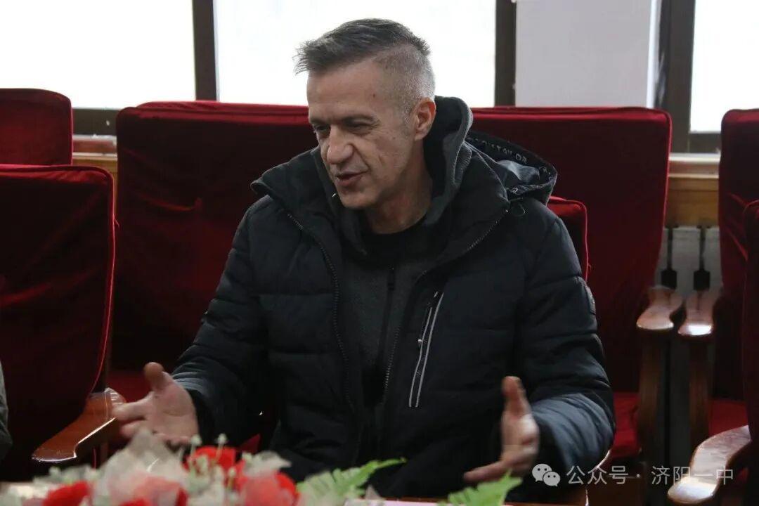 1月15日,济阳一中在办公楼二楼会议室举行隆重仪式,热烈欢迎来自塞尔维亚的足球教练内纳德·米洛舍维奇(Nenad Milosevic)先生正式加入我校教学团队。校长李振华、副书记何贻利、各年级足球教练、翻译赵兴国老师及相关职能部门负责人共同出席。仪式由校长助理程建强主持。