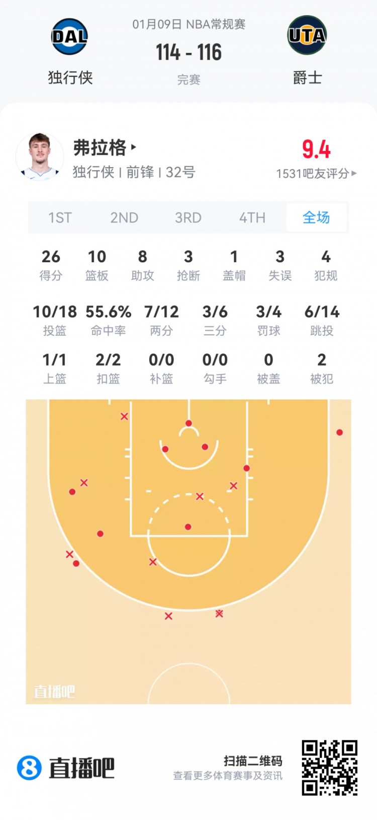 爵士首轮18号秀小克莱顿 登场21.1分钟
