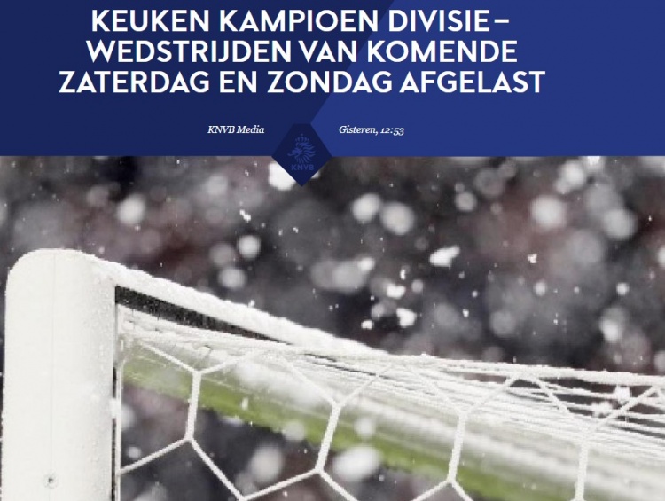 1月9日讯 荷兰足协官方宣布,由于受大雪天气影响,本周末荷乙联赛推迟进行,而荷甲目前暂时按计划进行。至于下周一的荷乙比赛,到时会按计划进行。